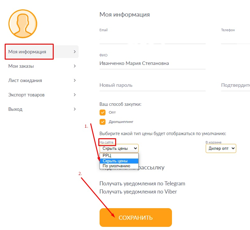 Это ли не крутость, когда можно просто показать на сайте товар  розничному и не переживать,что увидят закупочную цену? Переходи в Профиль ► Моя Информация. Теперь проверяем сайт. БЫЛО:        ...