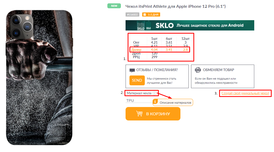 В itsPrint новое обновление! Карточка товара стала намного функциональнее  невыходя из карточки можно: увидеть градацию цены + выделяет Ваш присвоенный тип цен выбрать материал чехла. создать св...