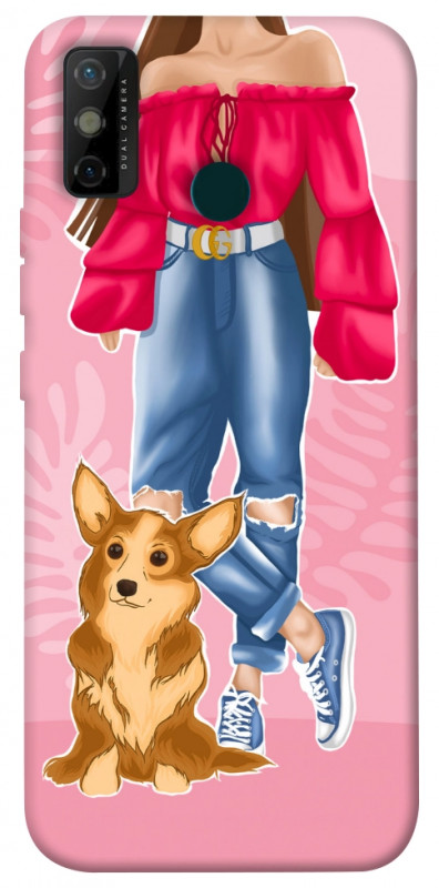 Чехол itsPrint Girl and corgi для TECNO Spark 6 Go, lifestyle, купить оптом с доставкой