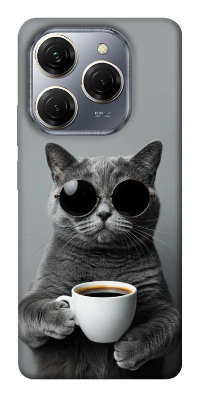 Чехол itsPrint Grey cat coffee для TECNO Spark 20 Pro