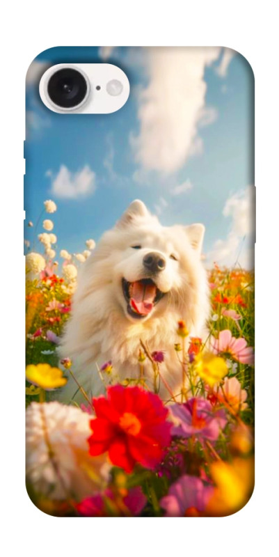Чехол itsPrint Happy dog in flowers для Apple iPhone 16e (6.1")