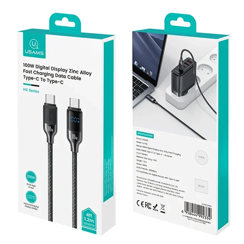 Дата кабель Usams US-SJ742 Digital Display HX Ser. Type-C to Type-C 100W (1.2m) — это идеальное решение для тех, кто ищет надежные и высококачественные кабели для быстрой зарядки и передачи данных. Этот кабель подходит для использования с современными цифровыми устройствами, оснащенными портом Type-C, и обеспечивает мощность до 100W, что делает его отличным выбором для зарядки ноутбуков, смартфонов и других гаджетов.
