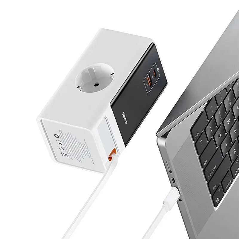 Зарядное устройство Baseus OS PowerCombo оснащено двумя розетками и двумя портами (1 USB-A и 1 USB-C), что позволяет одновременно заряжать несколько устройств. Это делает его идеальным выбором для офисов, домов и путешествий. Благодаря мощности 65W, устройство обеспечивает быструю и эффективную зарядку, что особенно важно для современных гаджетов с большими аккумуляторами.