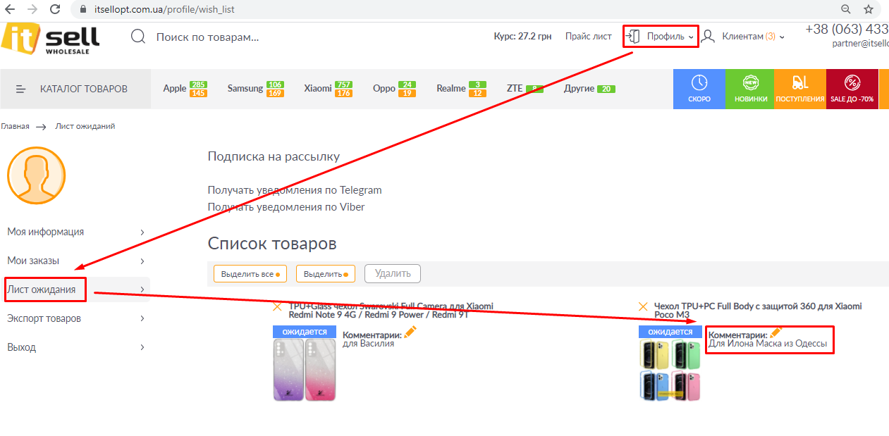 Ми його вдосконалили й тепер до товару, який Ви додаєте до Листа Очікування, можна написати коментар.