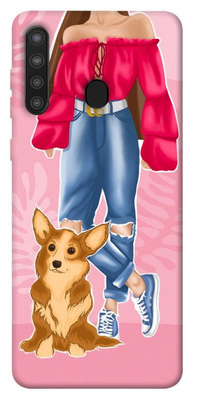 Чохол itsPrint Girl and corgi для Samsung Galaxy A21