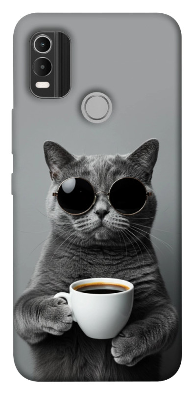 Чохол itsPrint Grey cat coffee для Nokia C21 Plus