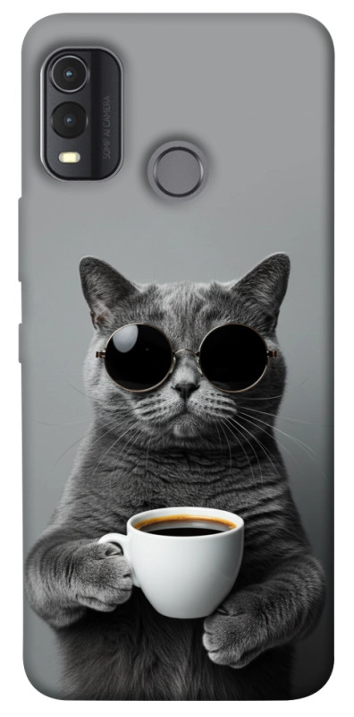 Чохол itsPrint Grey cat coffee для Nokia G11 Plus, тварини, купити оптом з доставкою