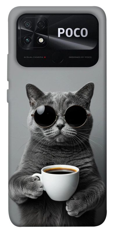 Чохол itsPrint Grey cat coffee для Xiaomi Poco C40