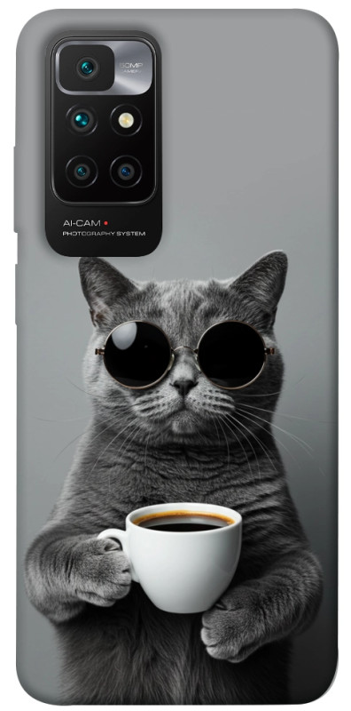 Чохол itsPrint Grey cat coffee для Xiaomi Redmi 10