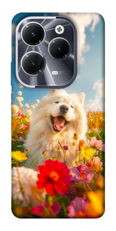 Чохол itsPrint Happy dog in flowers для Infinix Hot 40, тварини, купити оптом з доставкою