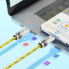 Кабель Hoco U113 виготовлений з високоякісних матеріалів, що гарантує його довговічність та надійність. Зовнішній матеріал кабелю — прозорий силікон з кольоровою алюмінієвою фольгою, що надає йому стильний вигляд та захищає від пошкоджень. З'єднувальні елементи виконані з цинкового сплаву, що забезпечує міцність та стійкість до зносу.